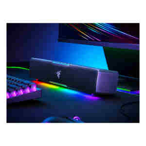 Soundbar je z dolžino 400 mm kompaktnih dimenzij in se lahko namesti pod monitor za čist izgled namizja. Razer Chroma RGB s 14 LED svetlobimi območji poskrbi za dinamične svetlobne učinke med igranjem iger in enostavno prilagajanje z aplikacijo.