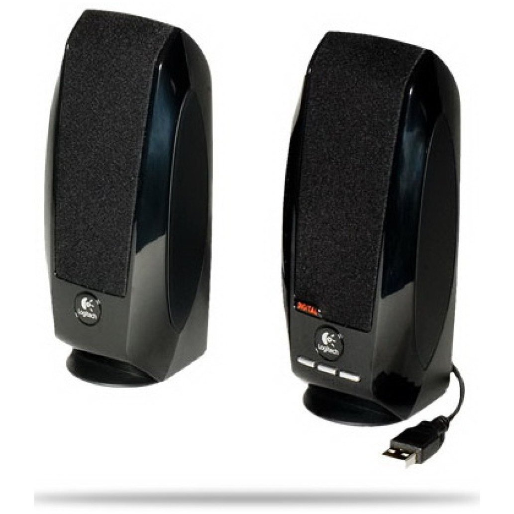 Zvočniki Logitech S150. Priporočena uporaba: PC. Avdio kanali: 2.0 kanala, Številka pogona: 2. Tehnologija povezovanja: Žična. RMS moč: 1,2 W, Frekvenčno območje: 90 – 20000 Hz Barva izdelka: Črna