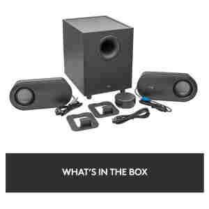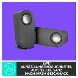 Impresiven zvok za vašo mizo z računalniškimi zvočniki Z407 Bluetooth. Strokovno nastavljen sistem zvočnikov 2.1 zagotavlja največjo moč 80 vatov in 40 vatov RMS. Izboljšajte svoj zvok z nizkotoncem, ki se spušča navzdol, in jasnost celotnega spektra z digitalno obdelavo signala. Elegantne ovalne satelitske zvočnike lahko postavite vodoravno ali navpično. Postavite jih tako, da ustrezajo vašemu delovnemu prostoru. Brezžični tonski krmilnik, ki podpira Bluetooth, vam omogoča popoln nadzor. Prilagodite nizke tone in glasnost, preskočite in začasno ustavite skladbe, ne da bi sploh vstali s kavča. Možna povezava preko Bluetooth, USB-A ali 3,5 mm vhodov.