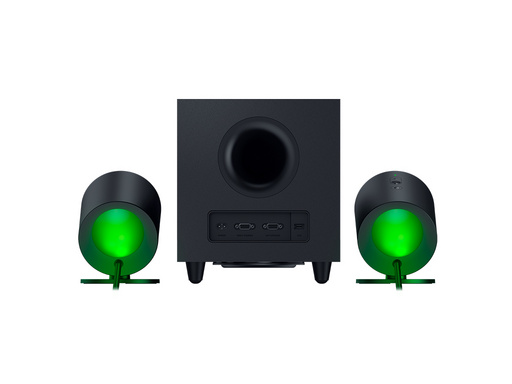Gonilniki premera 3″ priskrbijo kristalno čisto, natančno reprodukcijo zvoka. Satelita imata na zadnji strani 2-consko RGB Chroma osvetlitev, ki lahko projecira različne vzorce, barve in učinke.